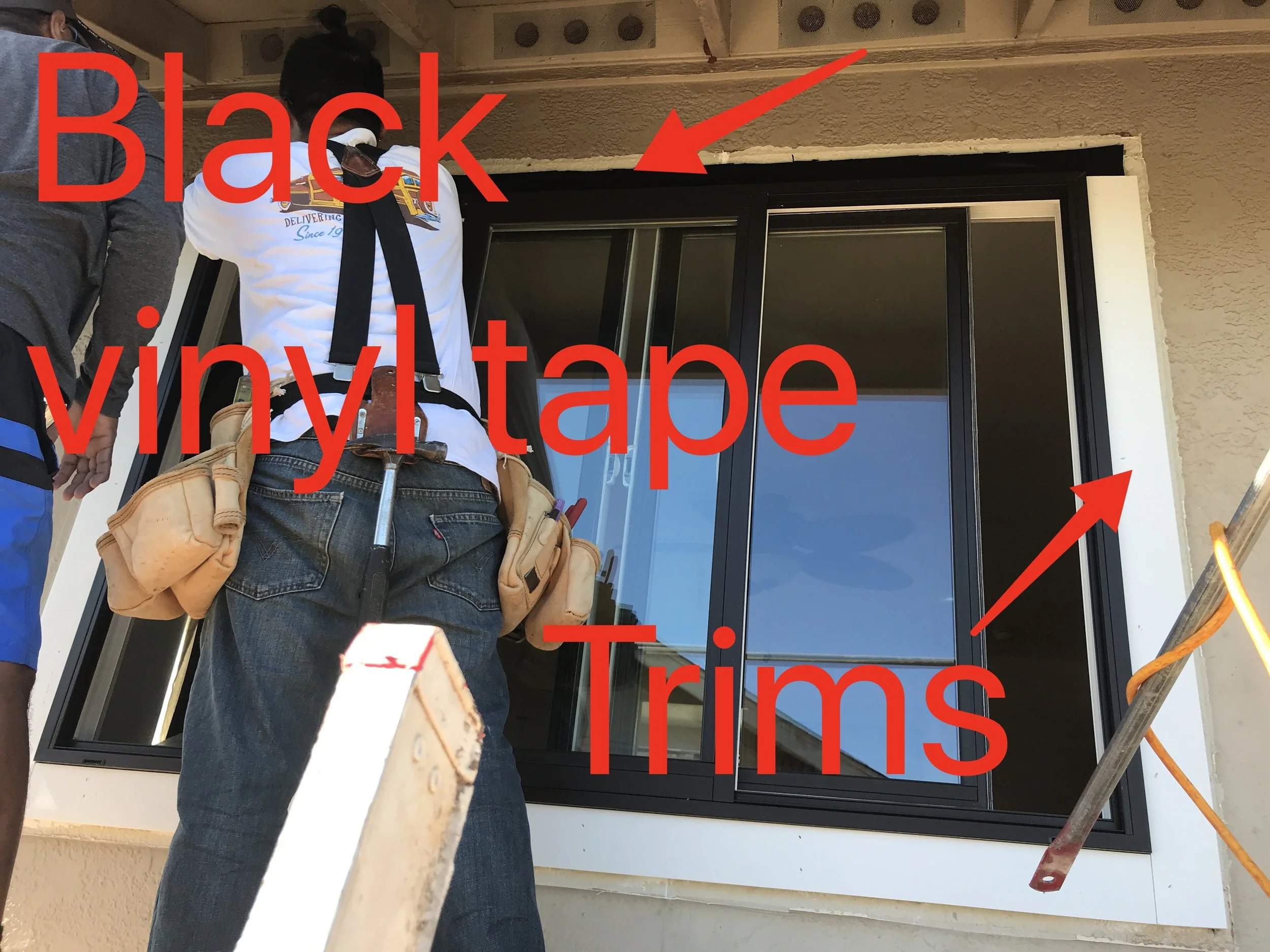 OUR TRIM INSTALLATION METHOD REQUIRES ASSOCIATION APPROVAL: This method of installing trims: top overlaps both uprights (left and right), and the bottom is sandwiched between the bottom portion of the uprights; also aids in the prevention of water infiltration. But this will not match the other units in your complex, and will require Association approval.